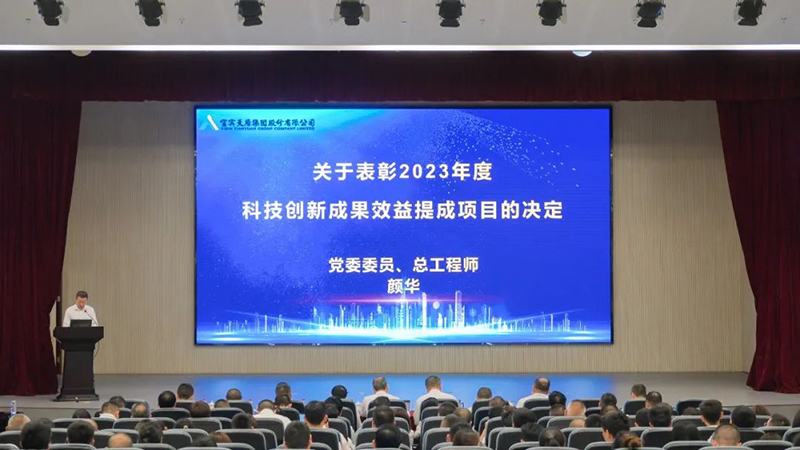党委委员、总工程师颜华宣读《关于表扬2023年度科技立异效果效益提成项目的决议》
